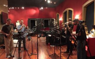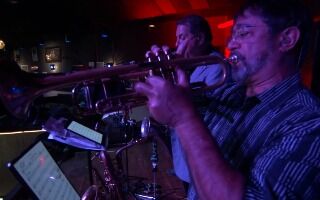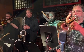 Tom DeFaria on drums, Big Al Daniels on percussion, Dave Cafro on trumpet, Rob Funk on trombone,